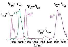 Tm, Yb), дают излучение в ИК-области спектра. Излучение ионов Nd3+, Er3+, Yb3+