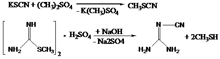 синтезируют при взаимодействии роданистого метила и метилмеркаптана в растворе