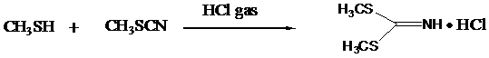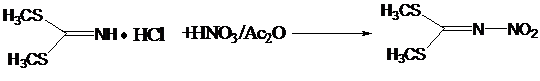 нитрованием гидрохлорида S,S′-ди(метилтио)имина, который, в свою очередь,