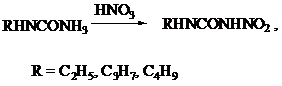 образованию N-алкил-N¢-нитромочевины. Нитрование атома азота, связанного с алкильной