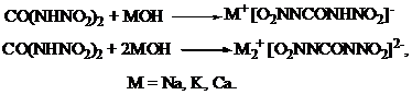 моносолей динитромочевины со щелочами могут образовываться соли, содержащие