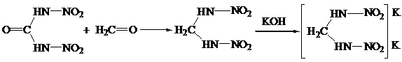 кислот образуется смесь моно- и дикалиевой солей симметричной динитромочевины: