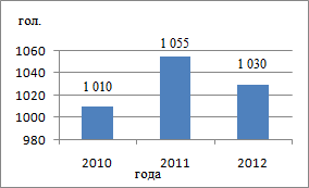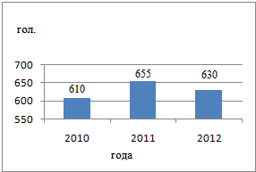 г. данный показатель увеличился на 45 гол. и составил 655 гол., а в 2012 г.