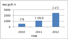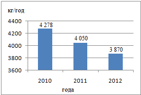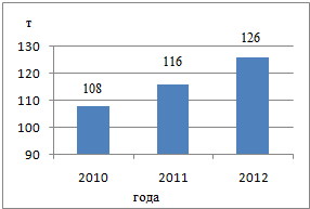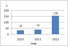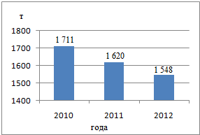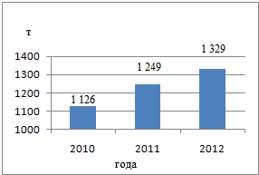 годом. В 2010 г. это показатель составил 1 126 т, в 2011 г. данный показатель