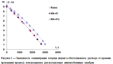 электродиализного обессоливания хлорида натрия, показывают, что все изученные