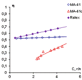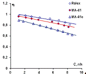 сравнению с мембраной МА-41. Чуть худшие результаты показывает мембрана МА-41с,