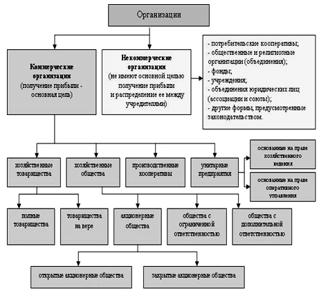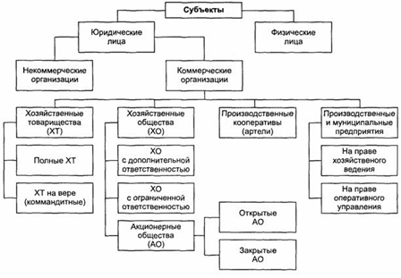 юридического лица и юридические лица. Они подразделяются на коммерческие,