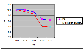 Кировской области по сравнению с РФ имеет более высокие темпы развития.