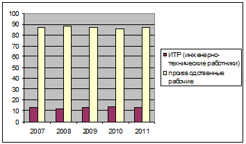 2011 году численность рабочих составила 0,99 от численности рабочих в 2010