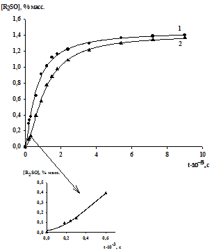 сульфидов. Кинетические кривые накопления сульфоксидов в присутствии