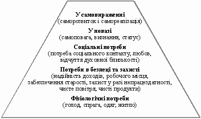 американського вченого Маслоу, в яку потреби вписуються за їх важливістю і