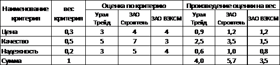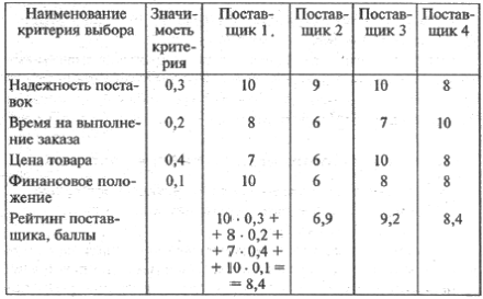 поставки и их надежности. При получении одинаковых критериев у нескольких