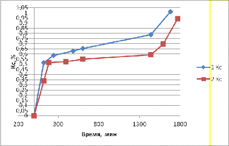 Результаты двух опытов представлены на графике