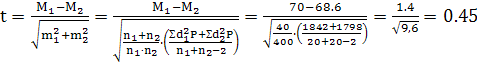 · достоверность разности средних величин для данной малой выборки