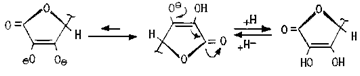 Аскорбиновая кислота легко отщепляет протон гидроксила в положении С3 кольца и