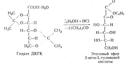 гидрата диацетон-2-кето-L-гулоновой кислоты (деацетонирование -> этерификация