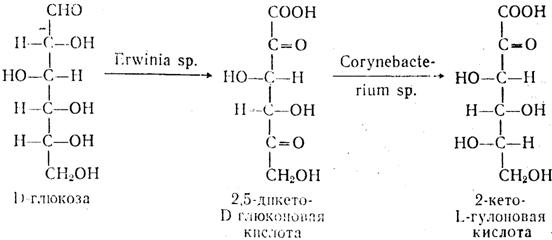 веществами являются L-сорбоза (наиболее доступна) или L-гулоза, превращающиеся
