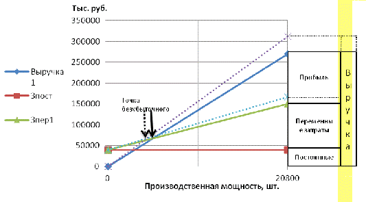 Зона безубыточности, благодаря изменению
