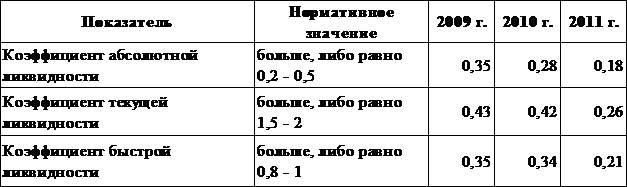 ликвидности показал неудовлетворительную степень платежеспособности предприятия,