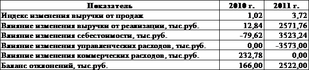 прибыли. Факторный анализ прибыли от продаж в 2010 и 2011 гг. показал, что