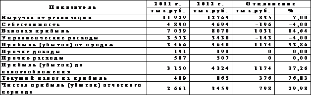 2012 г. валовой прибыли на 14,64%, прибыли от продаж - на 33,86%. В целом