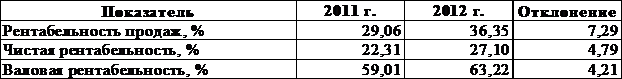 то они также наметят тенденцию к росту рентабельность продаж в 2012 г. по