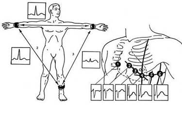 наложения электродов ЭKГ).