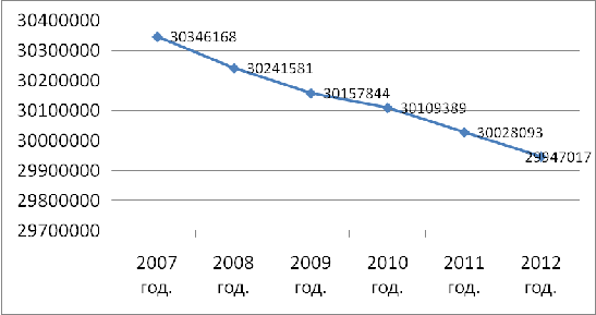 по сравнению с 2009, уменьшилась и составила 30109,389 тыс. человек. Доля