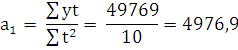 динамики по линейной функции (при счете времени от середины ряда и четном числе