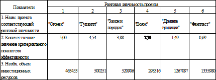 постройка ранжированный ряд по анализируемым проектам.