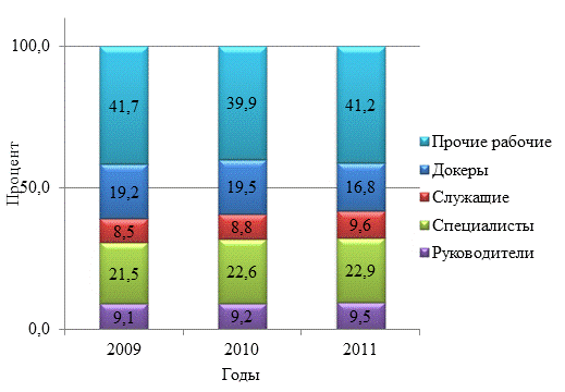 использования трудовых ресурсов ОАО «ТМТП» за 2009-2011 года