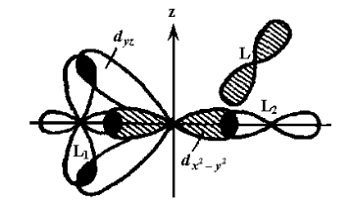 електронну густину з орбіталі dyz центрального атома. Це полегшує взаємодію