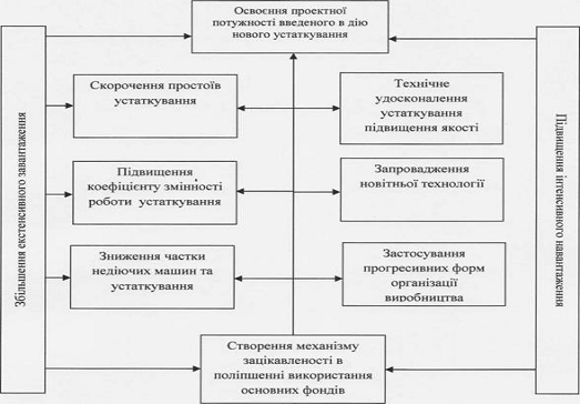 та інтенсивного використання основних фондів і виробничих потужностей є