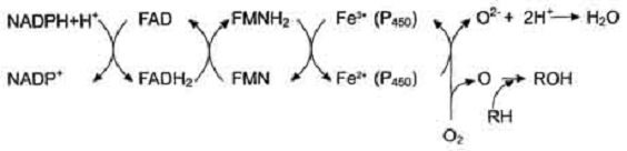 RH + О2 + NADPH + Н+ → ROH + Н2О + NADP+