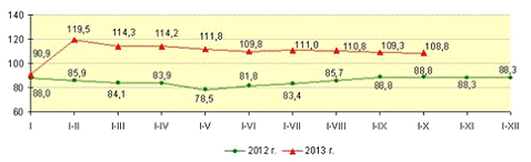 Рисунок Б.2. - Динамика инвестиций в основной капитал ( в процентах, %)