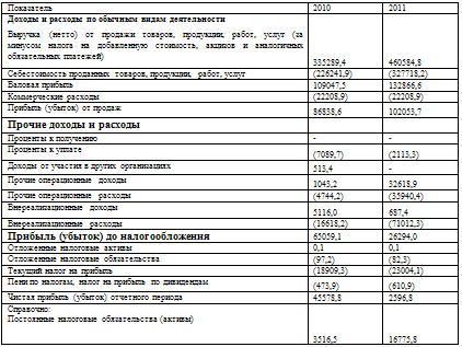Отчет о прибылях и убытках ООО "ТИСТ" за период 2010-2011 г.г.,