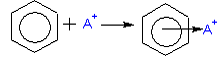 стадия - взаимодействие электрофильной частицы А+ с π-электронным облаком