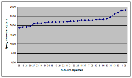 уровня, причем вариация себестоимости 1ц молока сильная. Группировка показала,