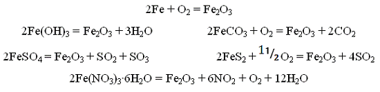оксиды: Fe+2O, Fe2+3O3, Fe3O4 (Fe+2O·Fe+32O3). Оксид железа (III) Fe2O3 помимо получения синтетическим путем, можно обнаружить в