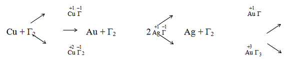 электронных оболочек 3d104s1 (Сu), 4d105s1 (Аg), 5d106s1 (Аu) и одновалентны.