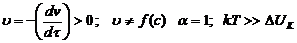 концентрация частиц со временем уменьшается, а скорость всегда положительна.