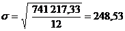 отклонение, отражающее однородность совокупности, равно 248,53 тыс. руб.