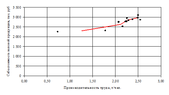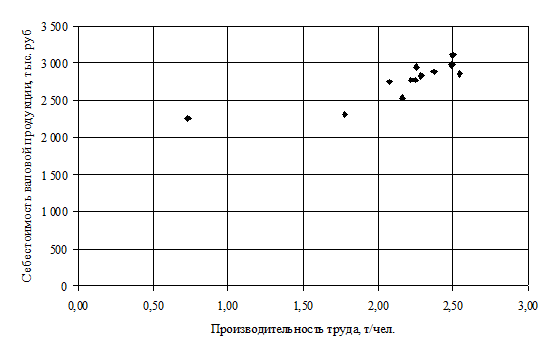 продукции и производительностью труда имеется прямая корреляционная связь.