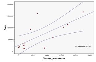 регрессии, характеризующее зависимость между инвестициями за счёт местного