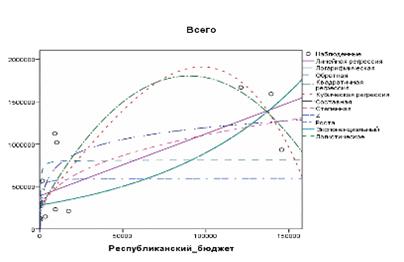 различные виды линий регрессии для связи инвестиций за счёт республиканского