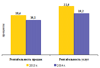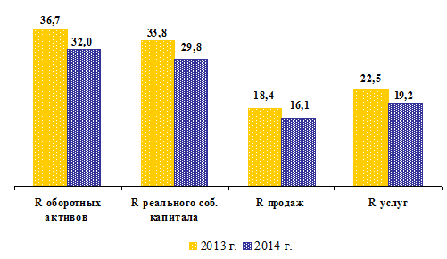 активов, собственного капитала, рентабельности продаж и рентабельности услуг