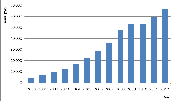 в 2012 году составил 66 485 млн. рублей, что в сопоставимых ценах выше уровня