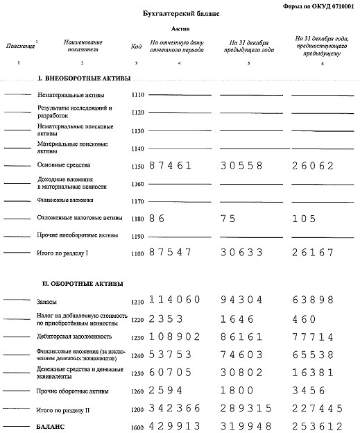 В. Бухгалтерский баланс 2012 г.