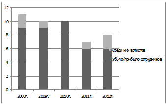 Статистический анализ производственной деятельности в МАУК РДТ 'Мастеровые' за период 2008-2012 гг.