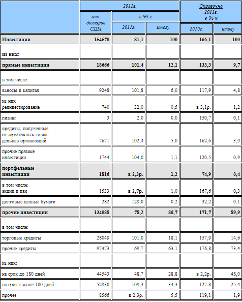 инвестиций позволило увеличить их приток за период с 2010 года по 2012 год.